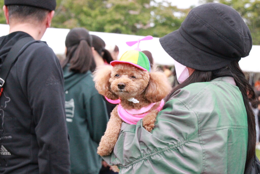 愛護フェス当日は快晴とはいえない曇天模様でしたが、ステージでのディスクドックショーを皮切りに、各会場内でのテントブース、屋内ホールでの講演会、保護犬猫の譲渡会、移動診療車の展示、うま・ひつじとのふれあいなど、様々なイベントが行われ、大変盛り上がりました(当日の様子をまとめた動画をアップする予定です)。
